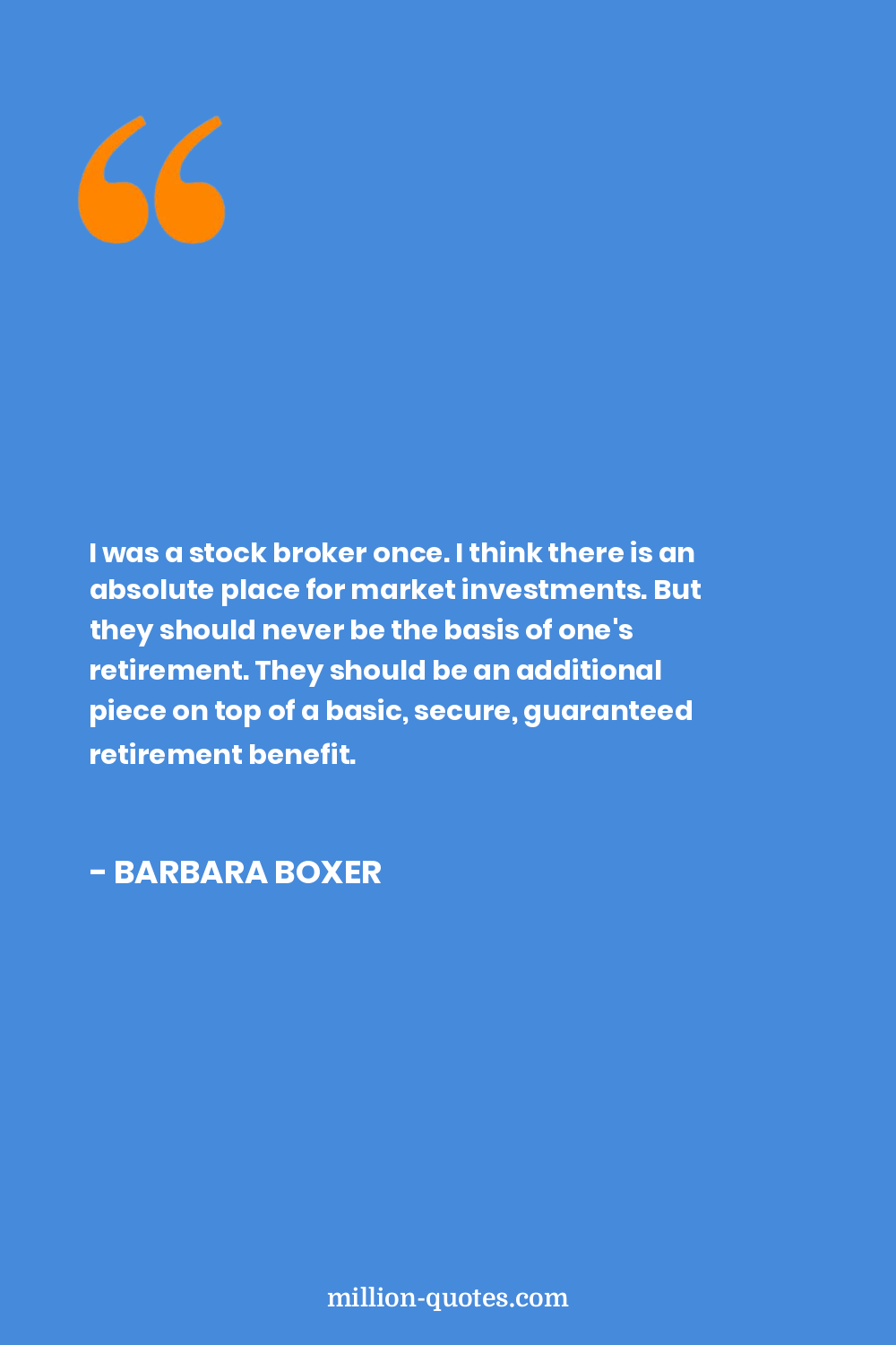 I was a stock broker once. I think there is an absolute place for market investments. But they should never be the basis of one's retirement. They should be an additional piece on top of a basic, secure, guaranteed retirement benefit.