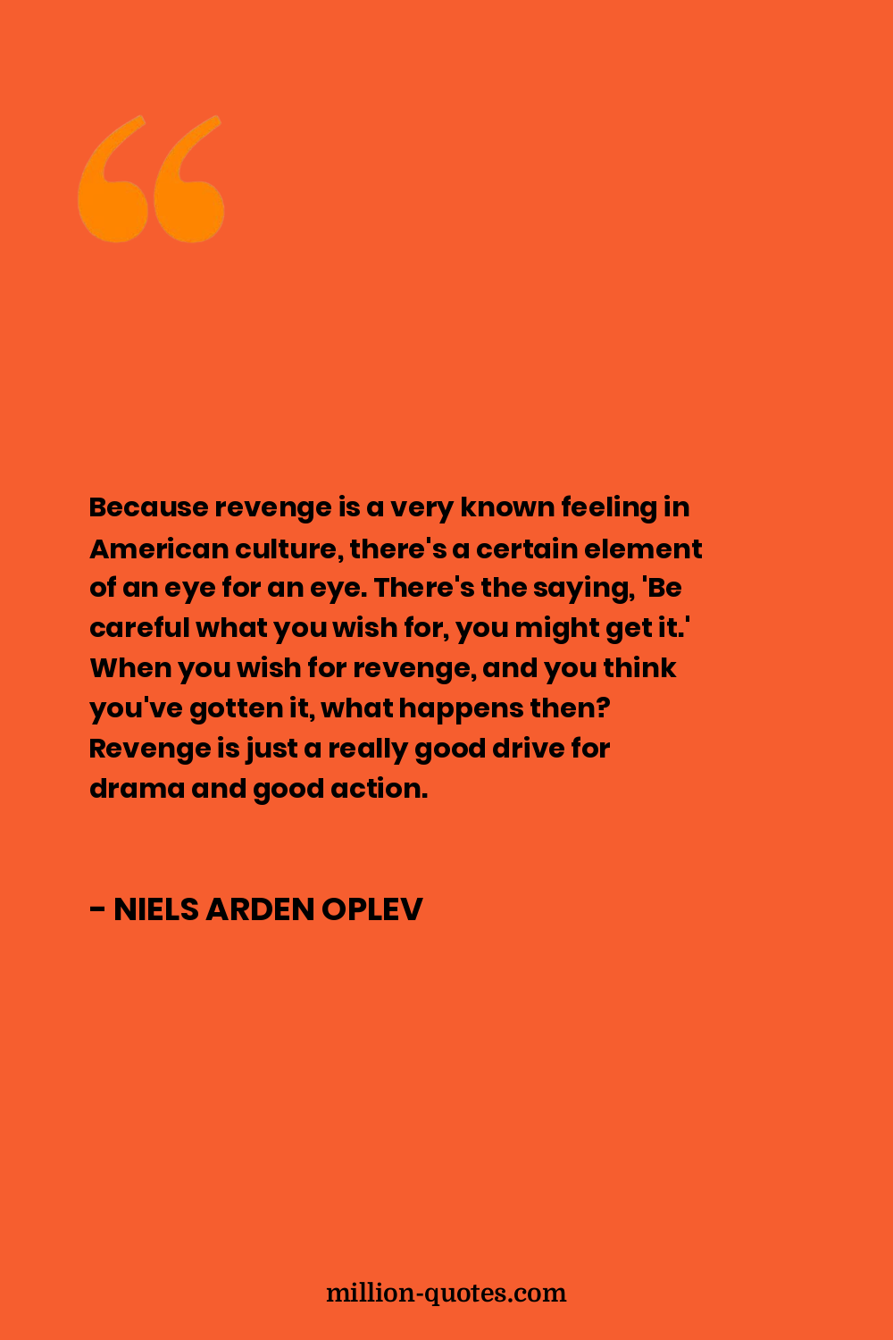 Because revenge is a very known feeling in American culture, there's a certain element of an eye for an eye. There's the saying, 'Be careful what you wish for, you might get it.' When you wish for revenge, and you think you've gotten it, what happens then? Revenge is just a really good drive for drama and good action.