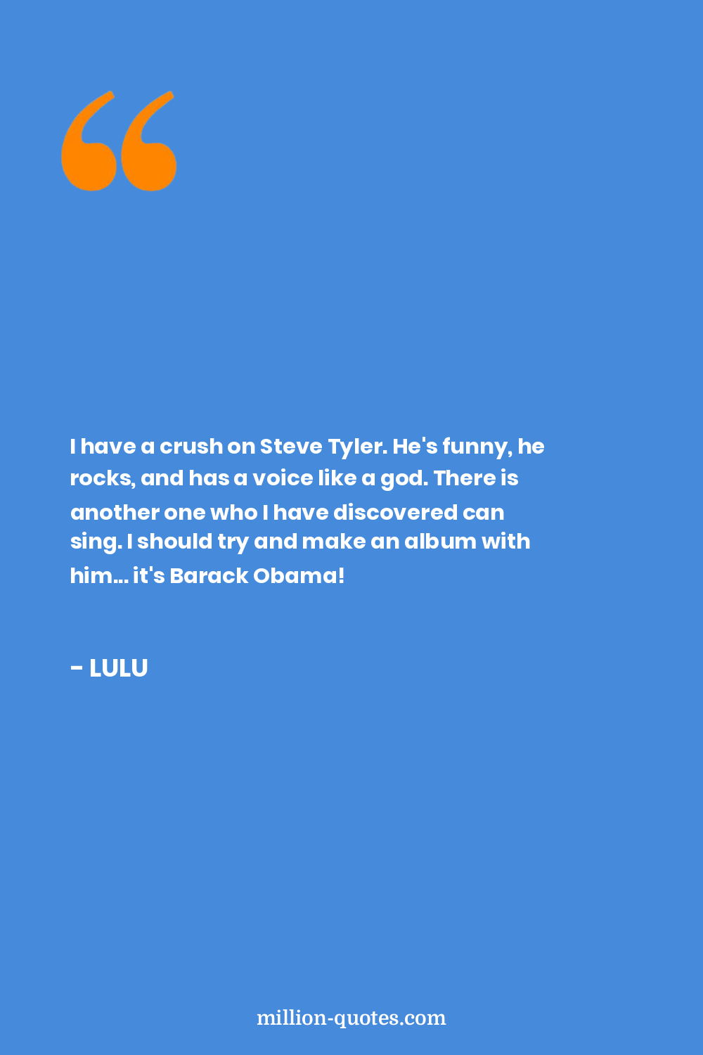 I have a crush on Steve Tyler. He's funny, he rocks, and has a voice like a god. There is another one who I have discovered can sing. I should try and make an album with him... it's Barack Obama!