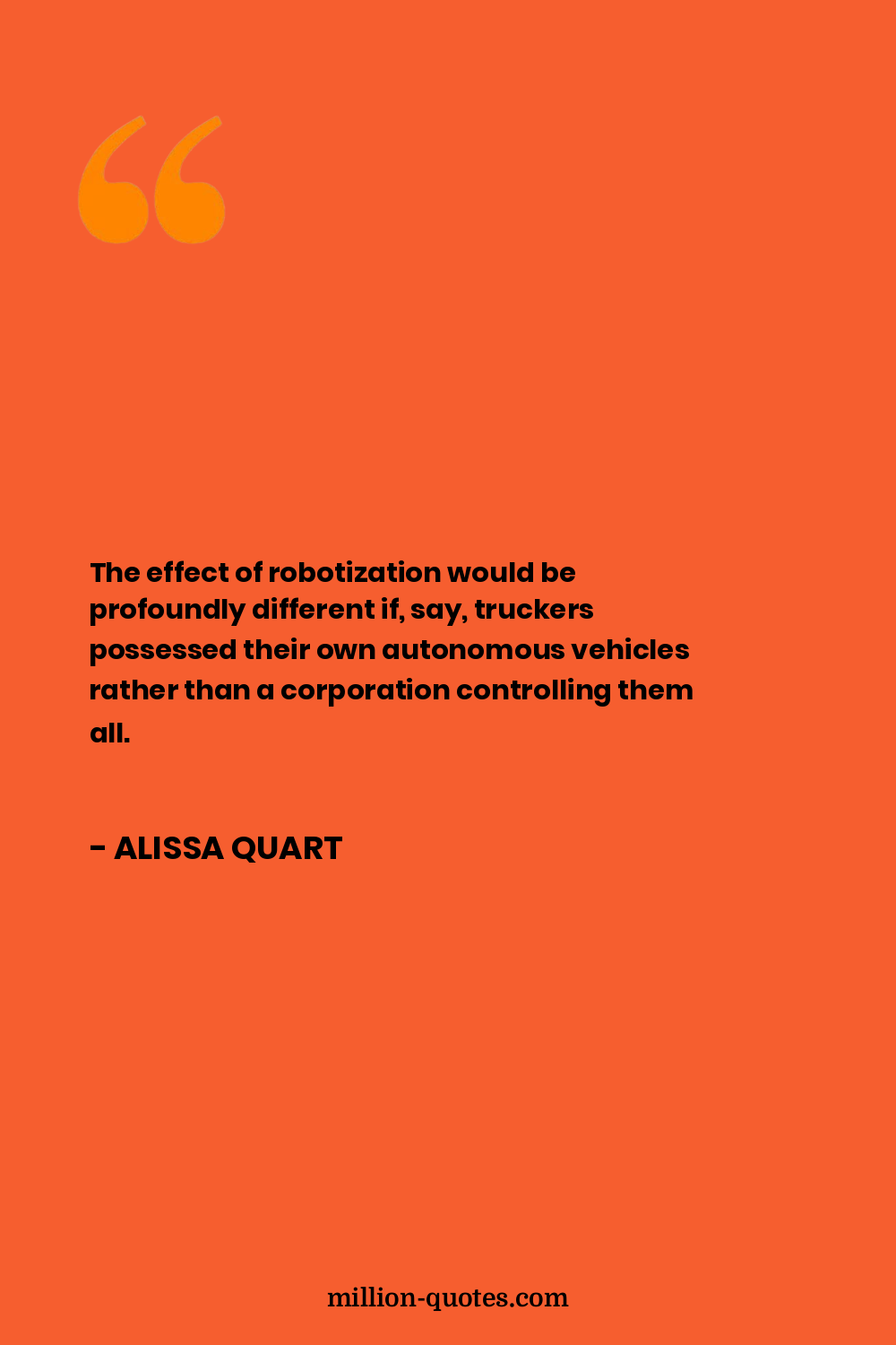 The effect of robotization would be profoundly different if, say, truckers possessed their own autonomous vehicles rather than a corporation controlling them all.
