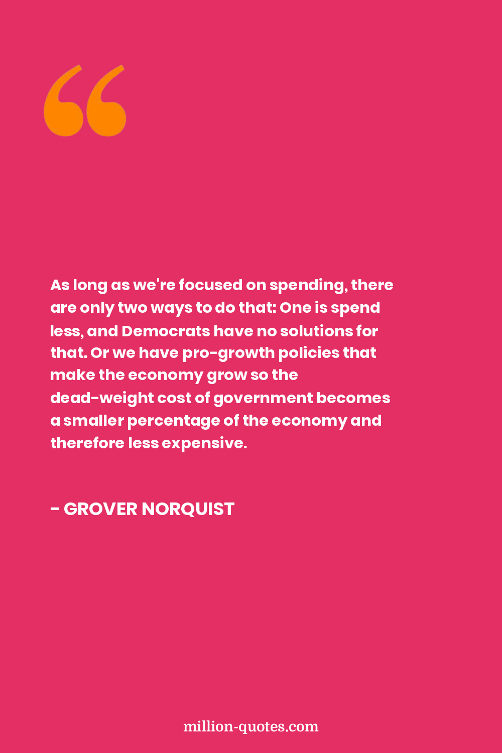 As long as we're focused on spending, there are only two ways to do that: One is spend less, and Democrats have no solutions for that. Or we have pro-growth policies that make the economy grow so the dead-weight cost of government becomes a smaller percentage of the economy and therefore less expensive.