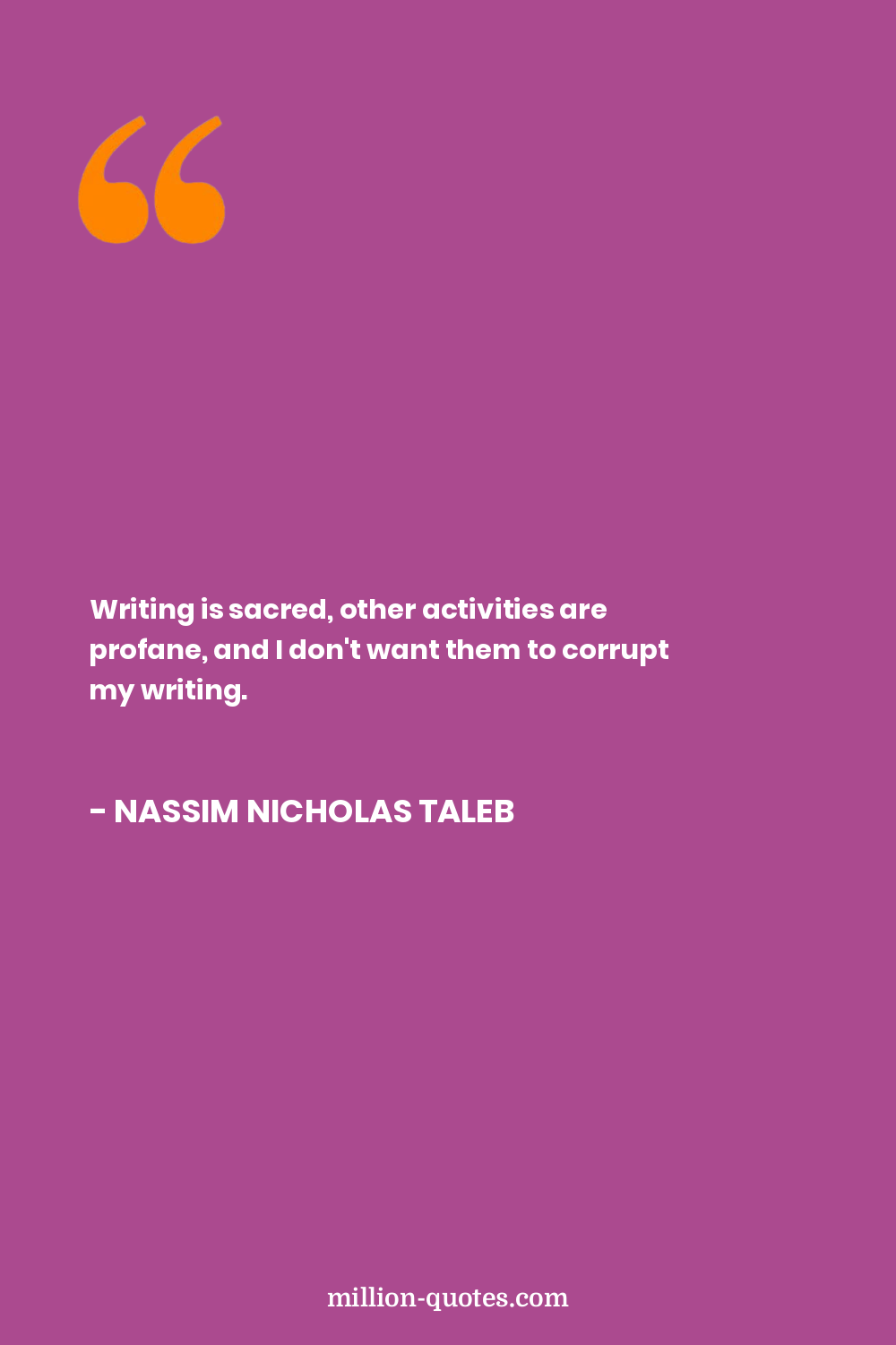 Writing is sacred, other activities are profane, and I don't want them to corrupt my writing.