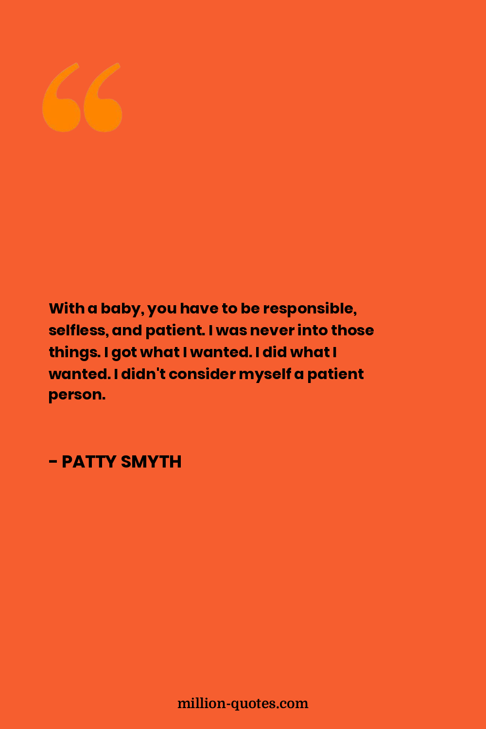 With a baby, you have to be responsible, selfless, and patient. I was never into those things. I got what I wanted. I did what I wanted. I didn't consider myself a patient person.