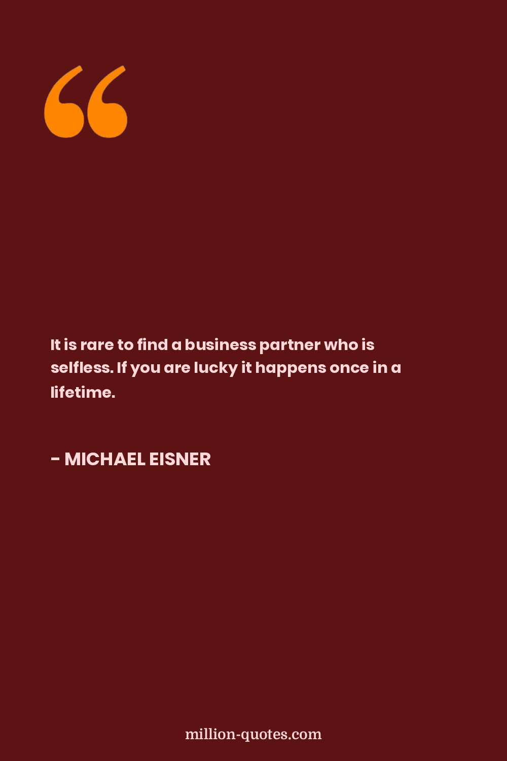 It is rare to find a business partner who is selfless. If you are lucky it happens once in a lifetime.