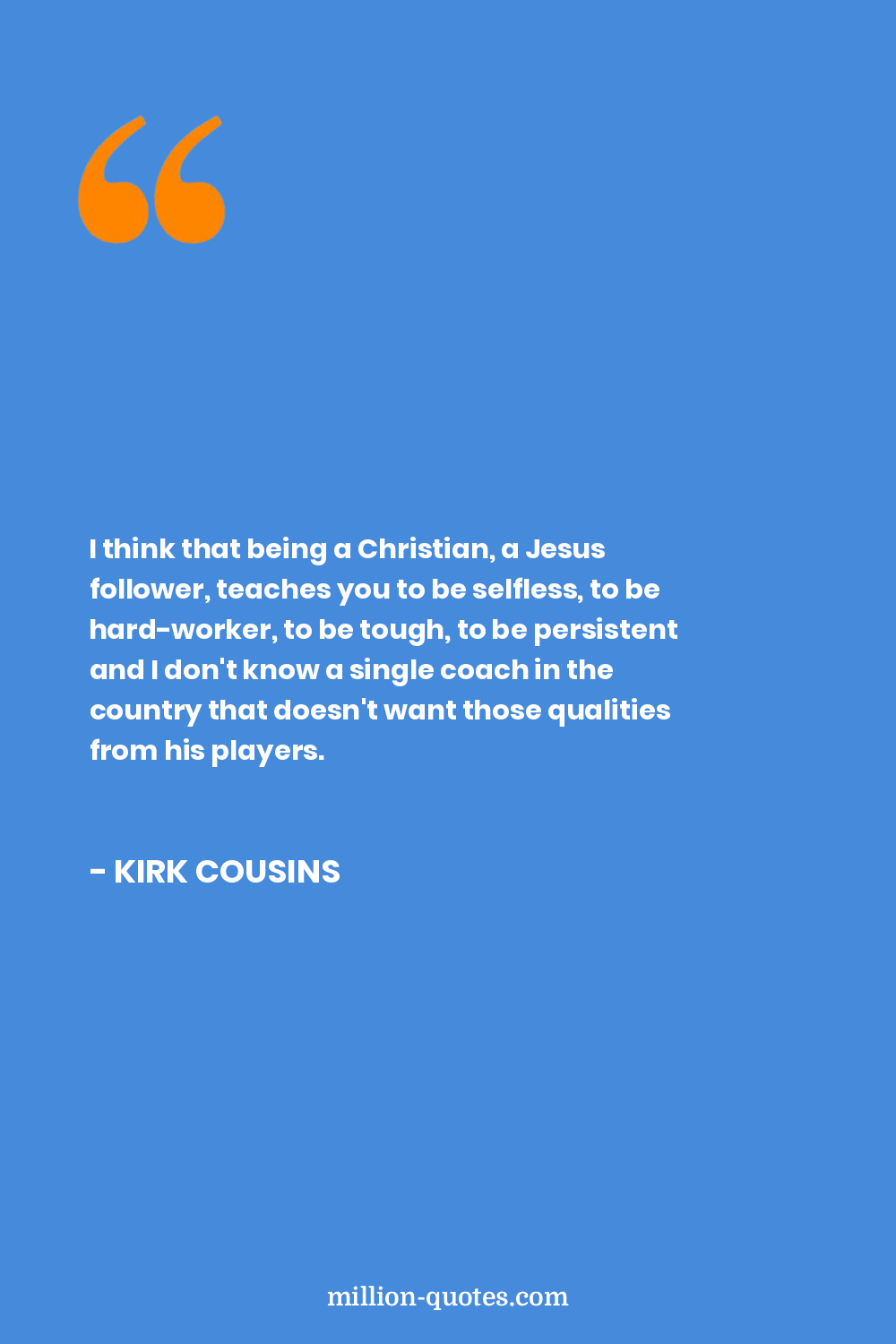 I think that being a Christian, a Jesus follower, teaches you to be selfless, to be hard-worker, to be tough, to be persistent and I don't know a single coach in the country that doesn't want those qualities from his players.