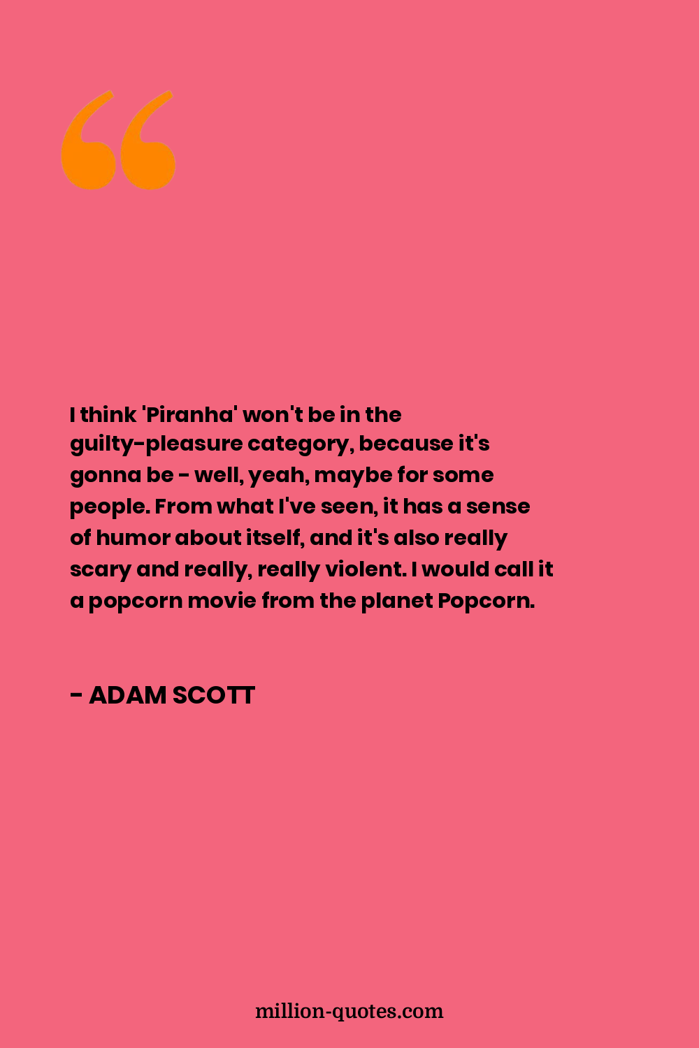 I think 'Piranha' won't be in the guilty-pleasure category, because it's gonna be - well, yeah, maybe for some people. From what I've seen, it has a sense of humor about itself, and it's also really scary and really, really violent. I would call it a popcorn movie from the planet Popcorn.