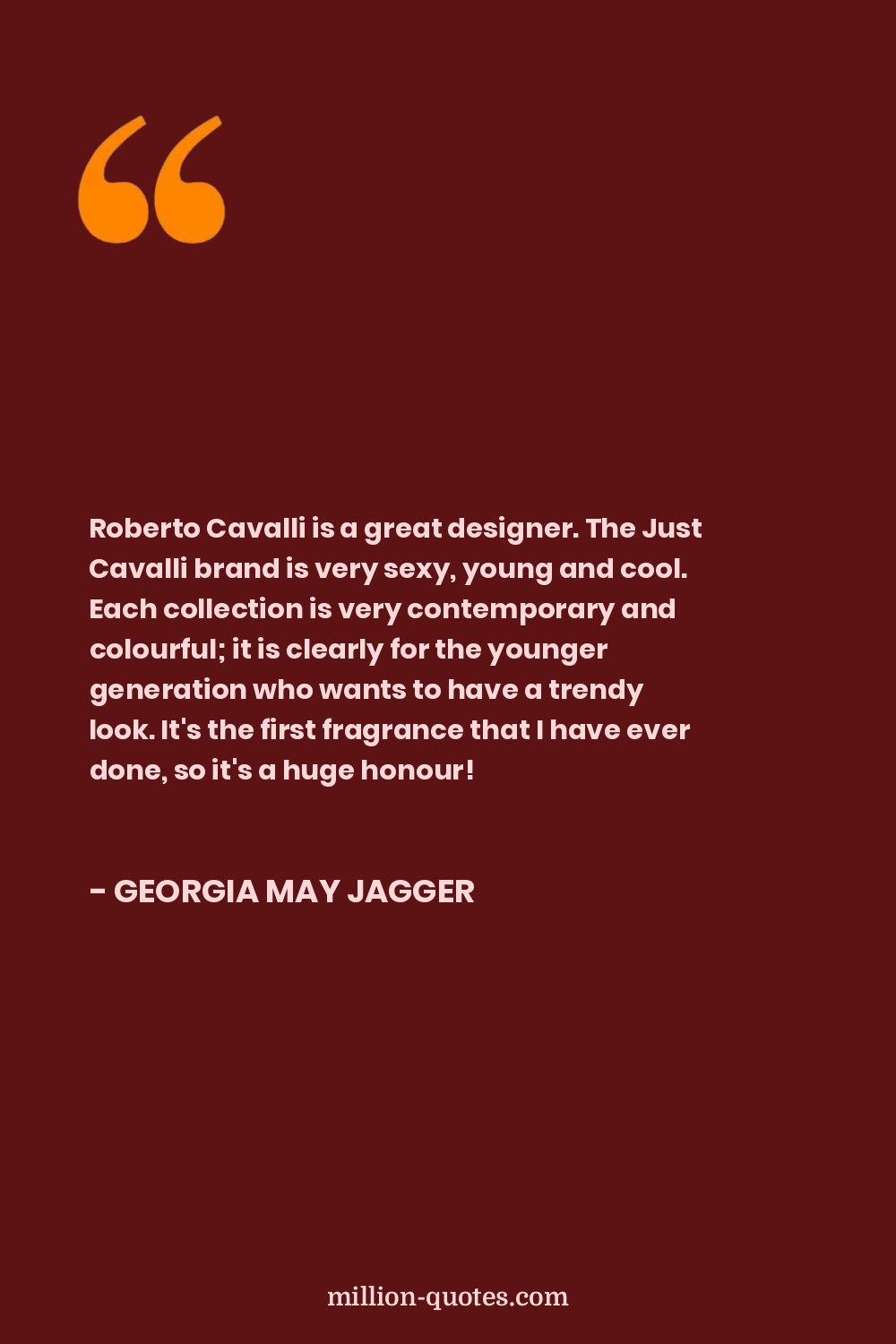 Roberto Cavalli is a great designer. The Just Cavalli brand is very sexy, young and cool. Each collection is very contemporary and colourful; it is clearly for the younger generation who wants to have a trendy look. It's the first fragrance that I have ever done, so it's a huge honour!