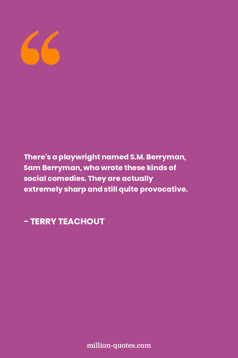There's a playwright named S.M. Berryman, Sam Berryman, who wrote these kinds of social comedies. They are actually extremely sharp and still quite provocative.
