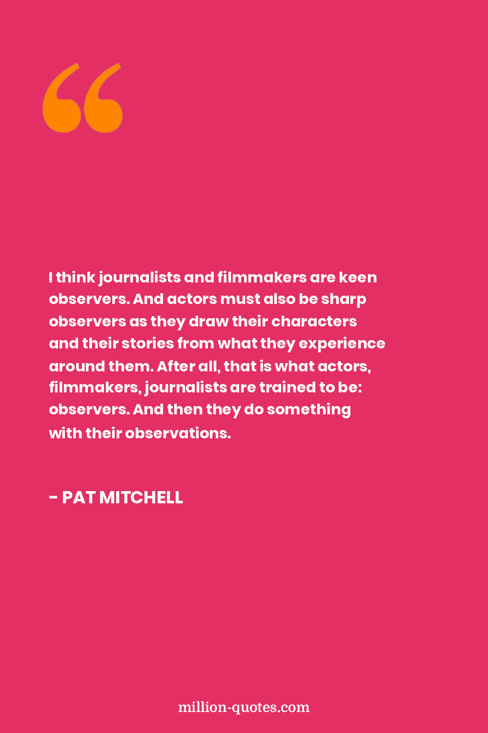 I think journalists and filmmakers are keen observers. And actors must also be sharp observers as they draw their characters and their stories from what they experience around them. After all, that is what actors, filmmakers, journalists are trained to be: observers. And then they do something with their observations.