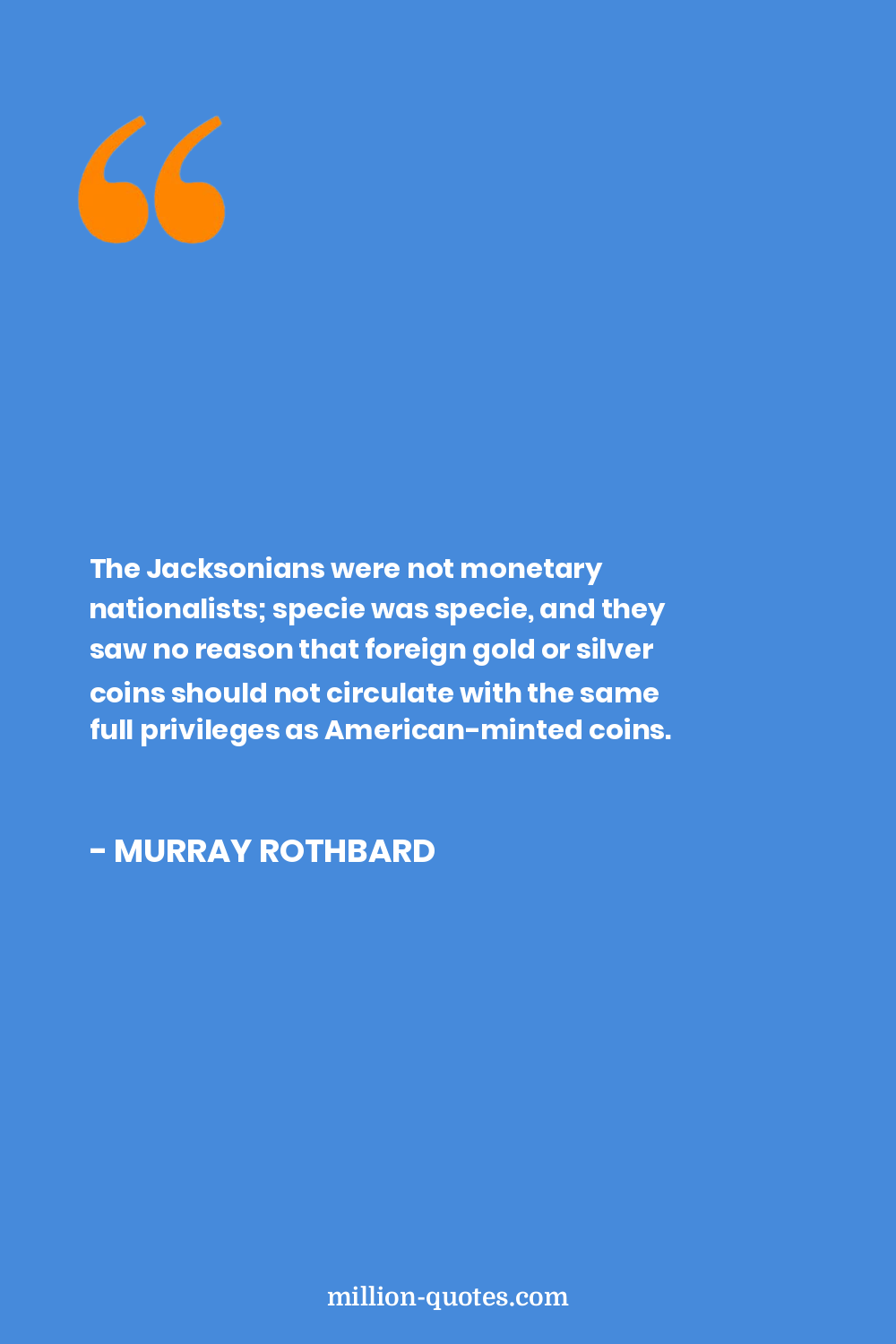The Jacksonians were not monetary nationalists; specie was specie, and they saw no reason that foreign gold or silver coins should not circulate with the same full privileges as American-minted coins.