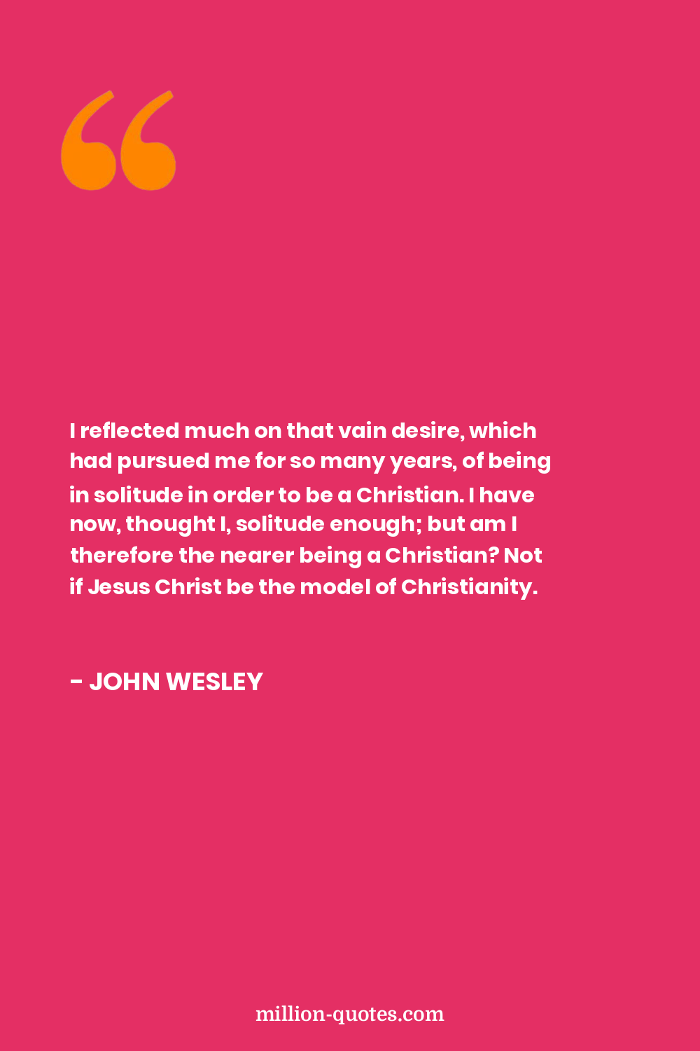 I reflected much on that vain desire, which had pursued me for so many years, of being in solitude in order to be a Christian. I have now, thought I, solitude enough; but am I therefore the nearer being a Christian? Not if Jesus Christ be the model of Christianity.