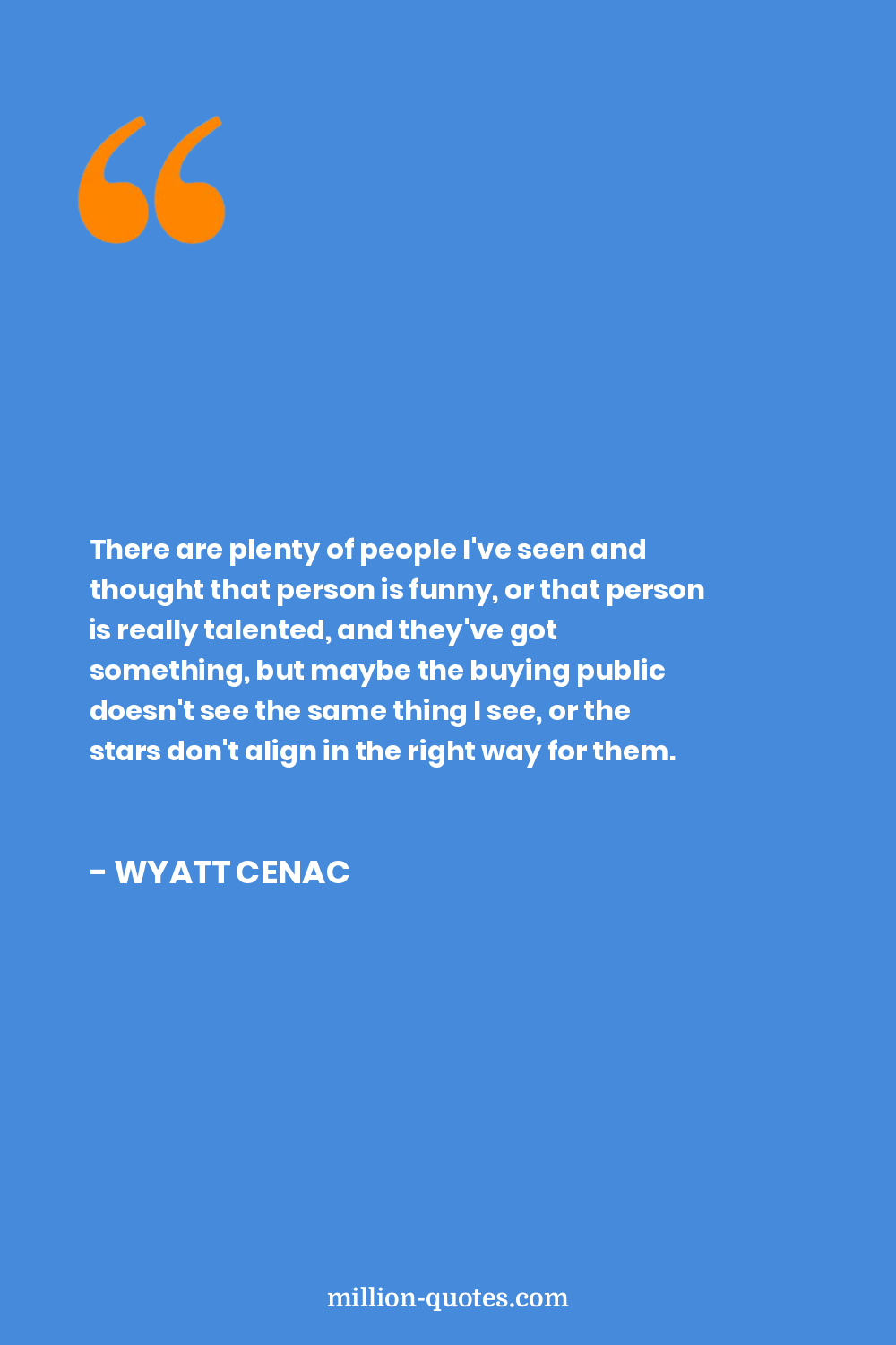There are plenty of people I've seen and thought that person is funny, or that person is really talented, and they've got something, but maybe the buying public doesn't see the same thing I see, or the stars don't align in the right way for them.