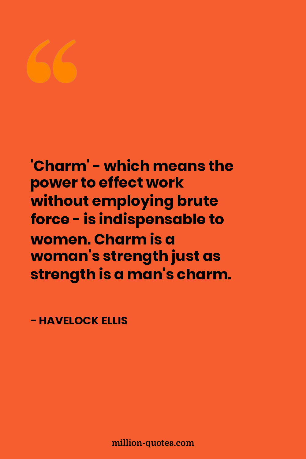 'Charm' - which means the power to effect work without employing brute force - is indispensable to women. Charm is a woman's strength just as strength is a man's charm.