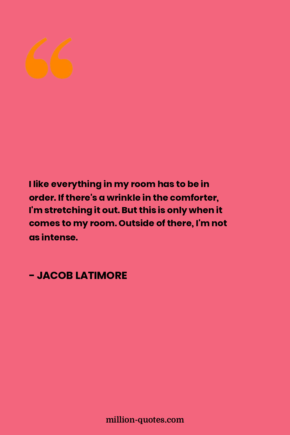 I like everything in my room has to be in order. If there's a wrinkle in the comforter, I'm stretching it out. But this is only when it comes to my room. Outside of there, I'm not as intense.