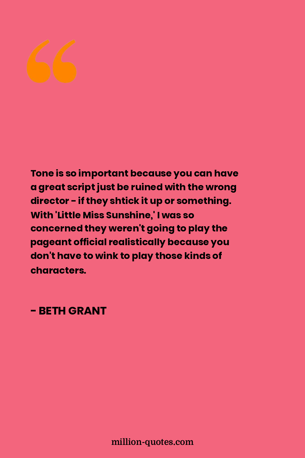 Tone is so important because you can have a great script just be ruined with the wrong director - if they shtick it up or something. With 'Little Miss Sunshine,' I was so concerned they weren't going to play the pageant official realistically because you don't have to wink to play those kinds of characters.