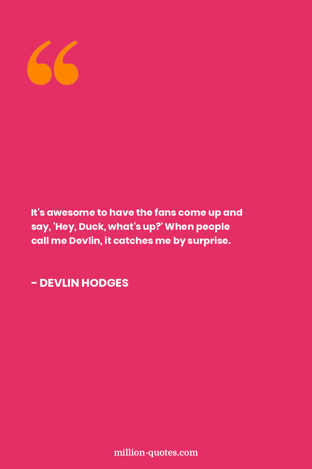 It's awesome to have the fans come up and say, 'Hey, Duck, what's up?' When people call me Devlin, it catches me by surprise.