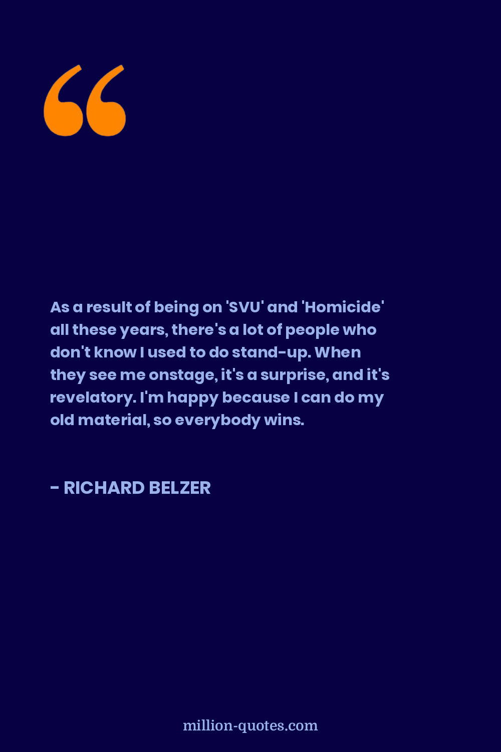 As a result of being on 'SVU' and 'Homicide' all these years, there's a lot of people who don't know I used to do stand-up. When they see me onstage, it's a surprise, and it's revelatory. I'm happy because I can do my old material, so everybody wins.