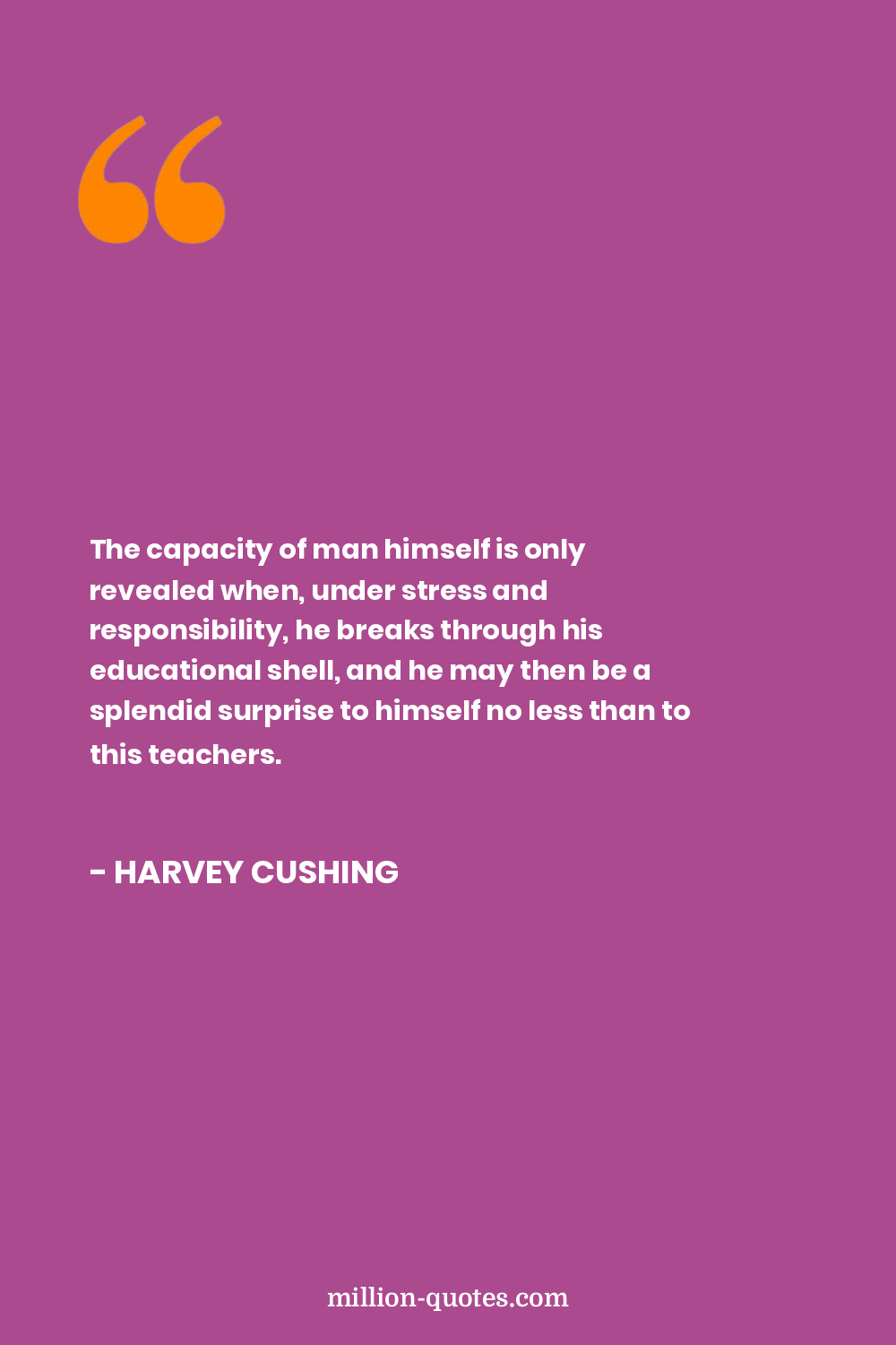 The capacity of man himself is only revealed when, under stress and responsibility, he breaks through his educational shell, and he may then be a splendid surprise to himself no less than to this teachers.