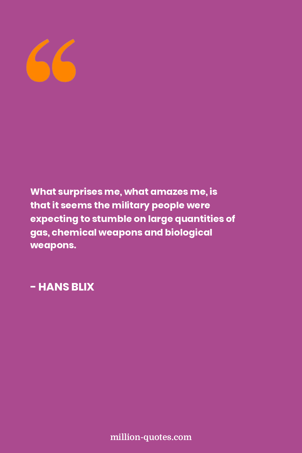What surprises me, what amazes me, is that it seems the military people were expecting to stumble on large quantities of gas, chemical weapons and biological weapons.