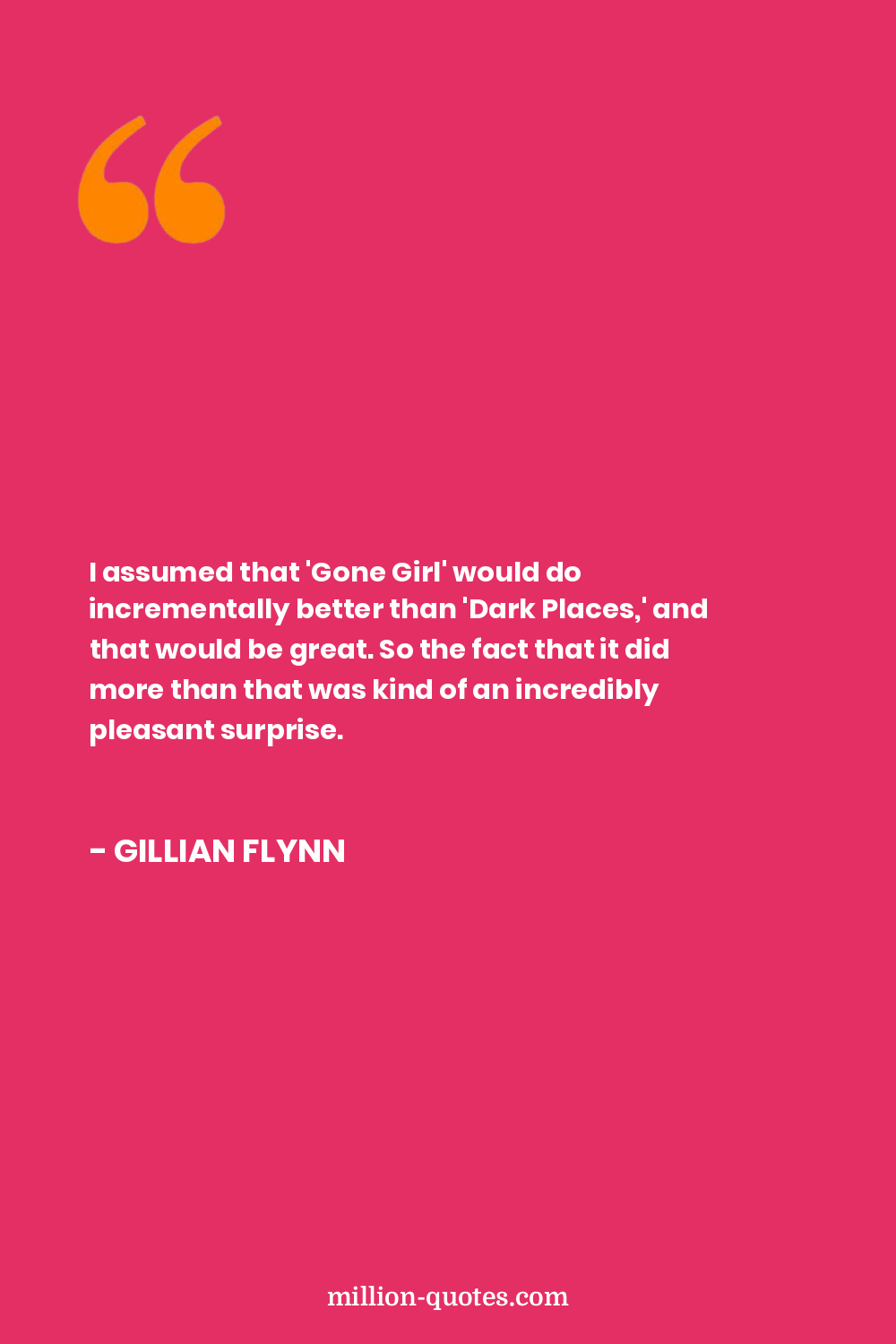 I assumed that 'Gone Girl' would do incrementally better than 'Dark Places,' and that would be great. So the fact that it did more than that was kind of an incredibly pleasant surprise.