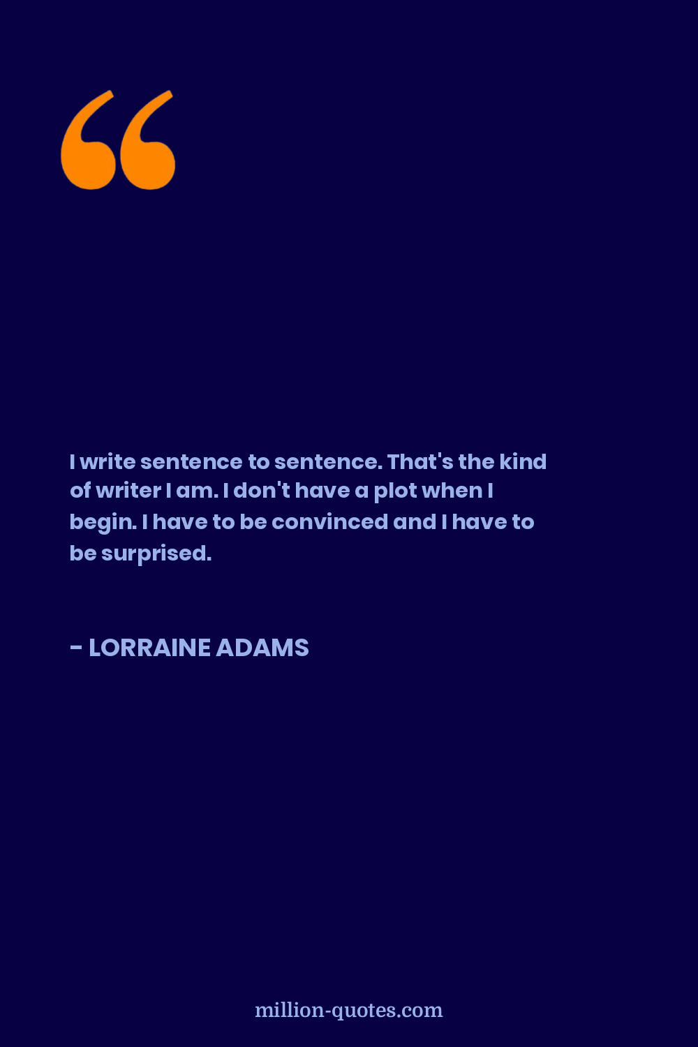 I write sentence to sentence. That's the kind of writer I am. I don't have a plot when I begin. I have to be convinced and I have to be surprised.
