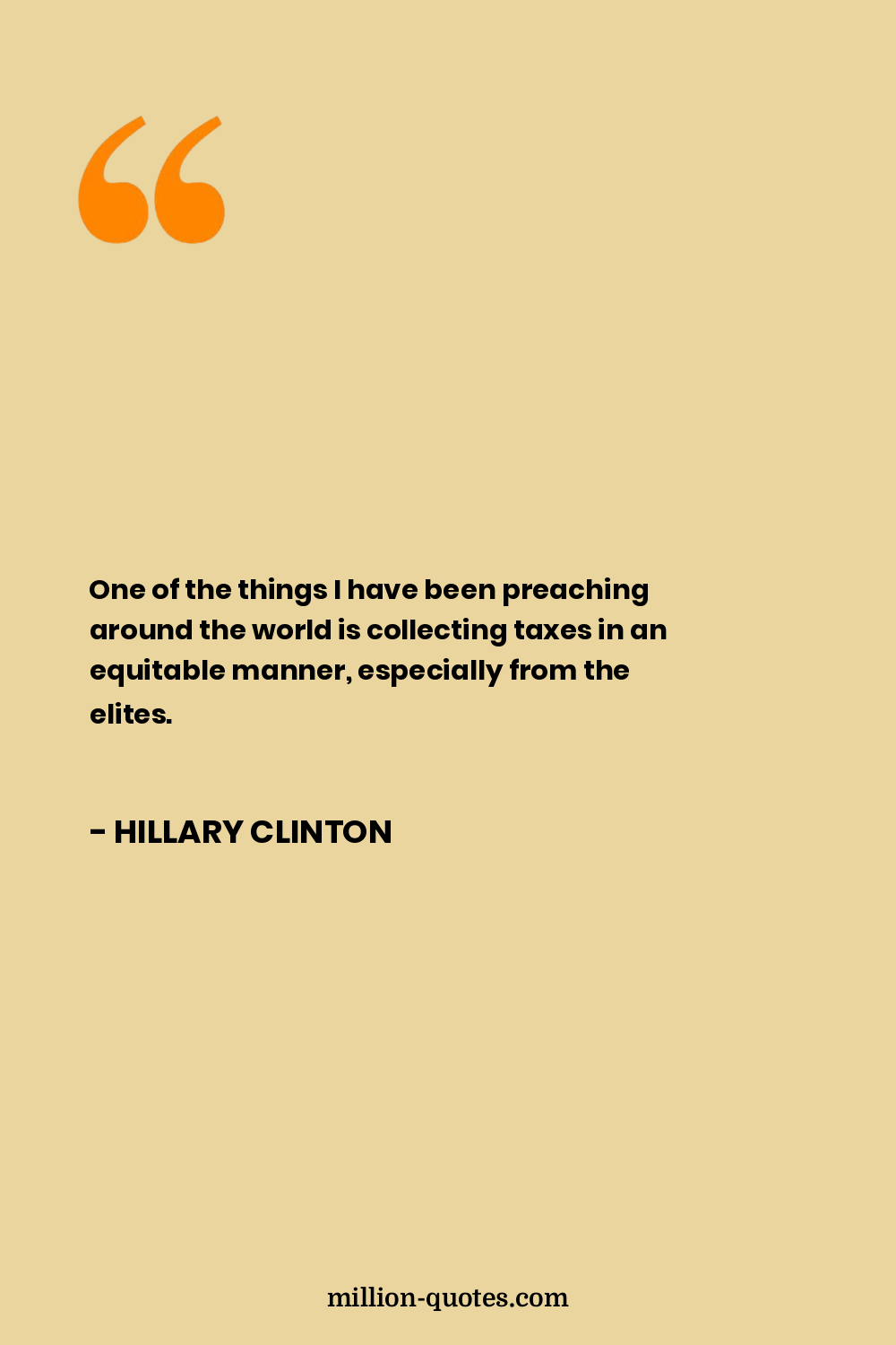 One of the things I have been preaching around the world is collecting taxes in an equitable manner, especially from the elites.
