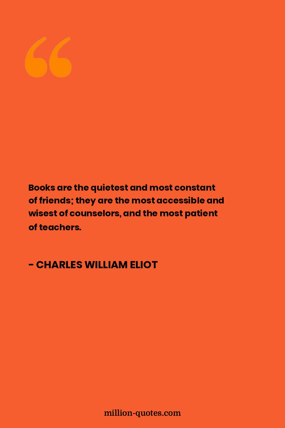 Books are the quietest and most constant of friends; they are the most accessible and wisest of counselors, and the most patient of teachers.