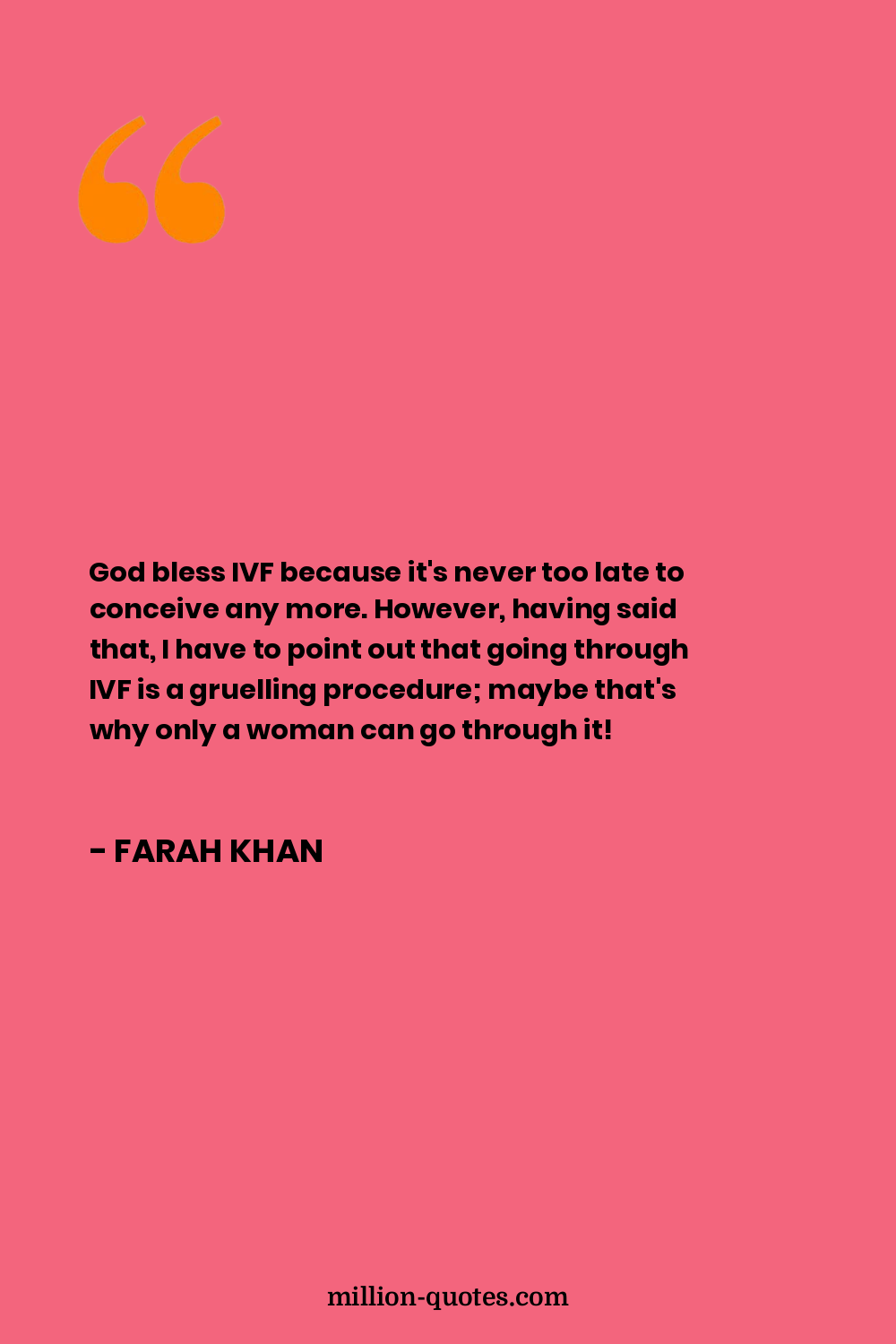 God bless IVF because it's never too late to conceive any more. However, having said that, I have to point out that going through IVF is a gruelling procedure; maybe that's why only a woman can go through it!