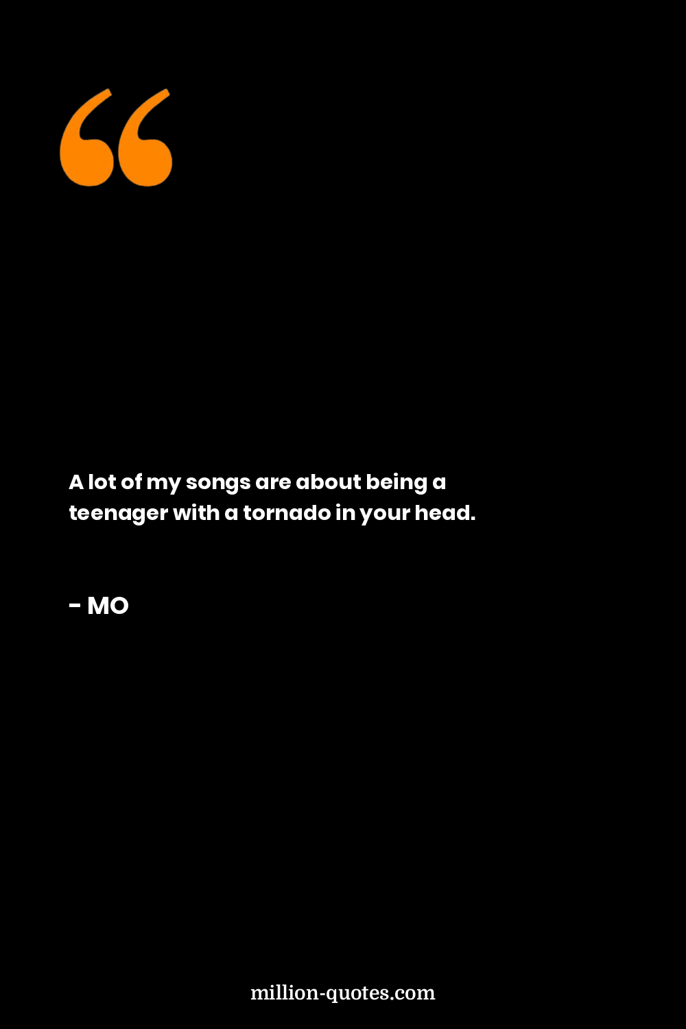 A lot of my songs are about being a teenager with a tornado in your head.