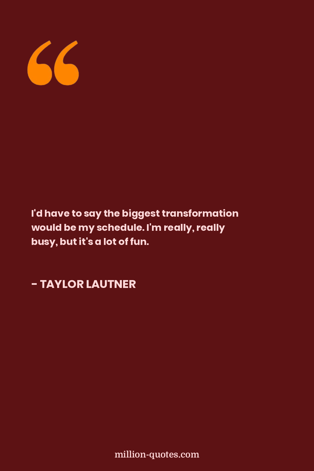 I'd have to say the biggest transformation would be my schedule. I'm really, really busy, but it's a lot of fun.