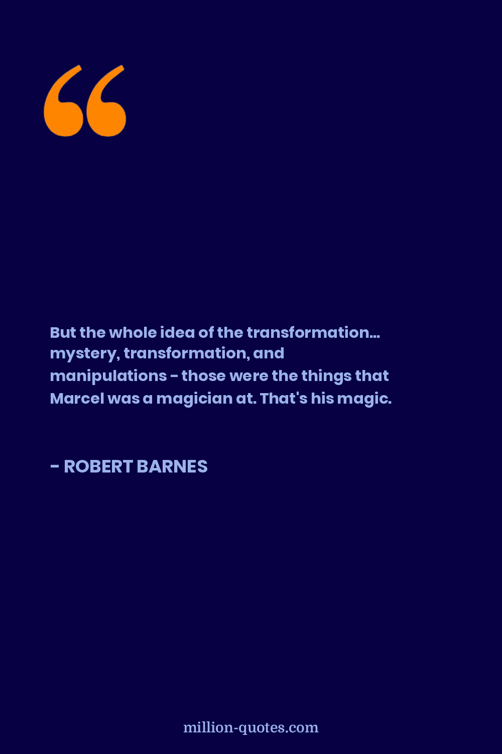 But the whole idea of the transformation... mystery, transformation, and manipulations - those were the things that Marcel was a magician at. That's his magic.