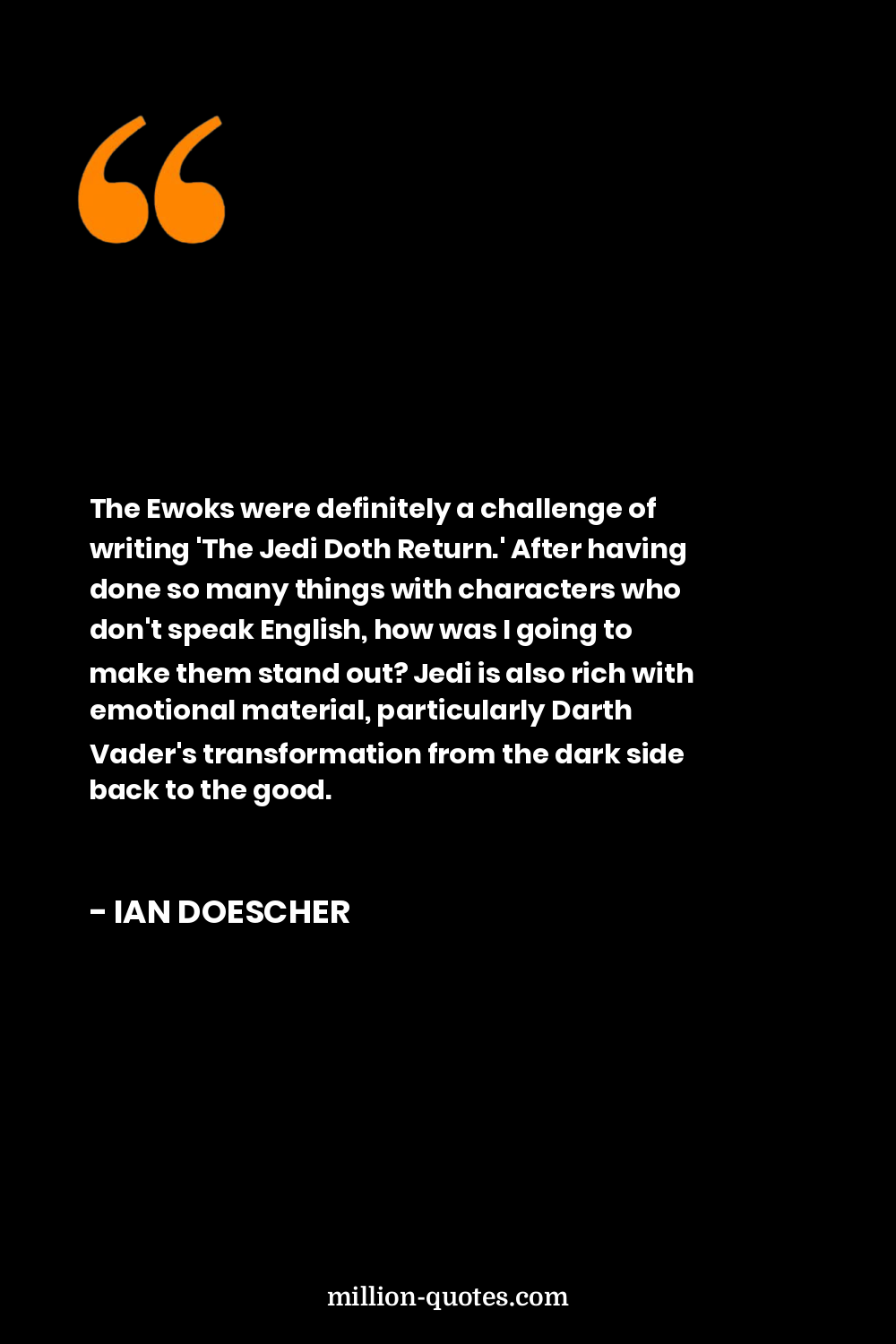 The Ewoks were definitely a challenge of writing 'The Jedi Doth Return.' After having done so many things with characters who don't speak English, how was I going to make them stand out? Jedi is also rich with emotional material, particularly Darth Vader's transformation from the dark side back to the good.