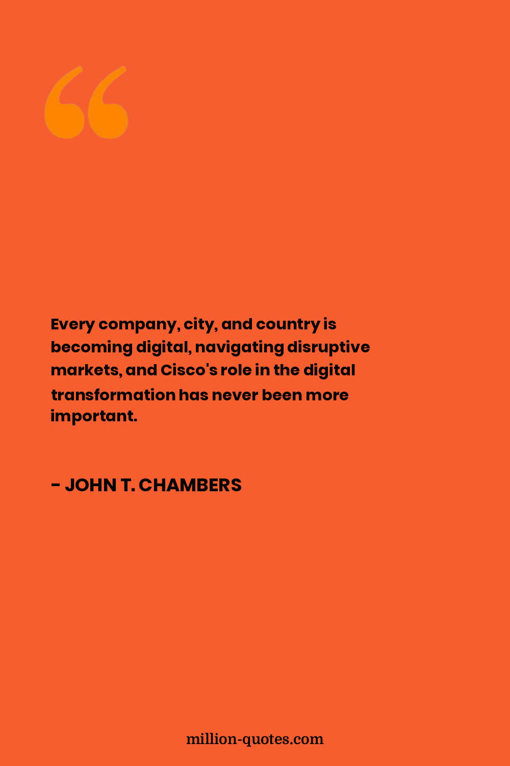 Every company, city, and country is becoming digital, navigating disruptive markets, and Cisco's role in the digital transformation has never been more important.