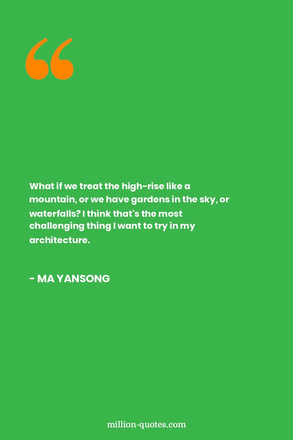 What if we treat the high-rise like a mountain, or we have gardens in the sky, or waterfalls? I think that's the most challenging thing I want to try in my architecture.
