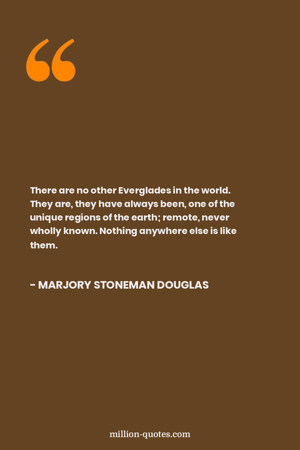 There are no other Everglades in the world. They are, they have always been, one of the unique regions of the earth; remote, never wholly known. Nothing anywhere else is like them.