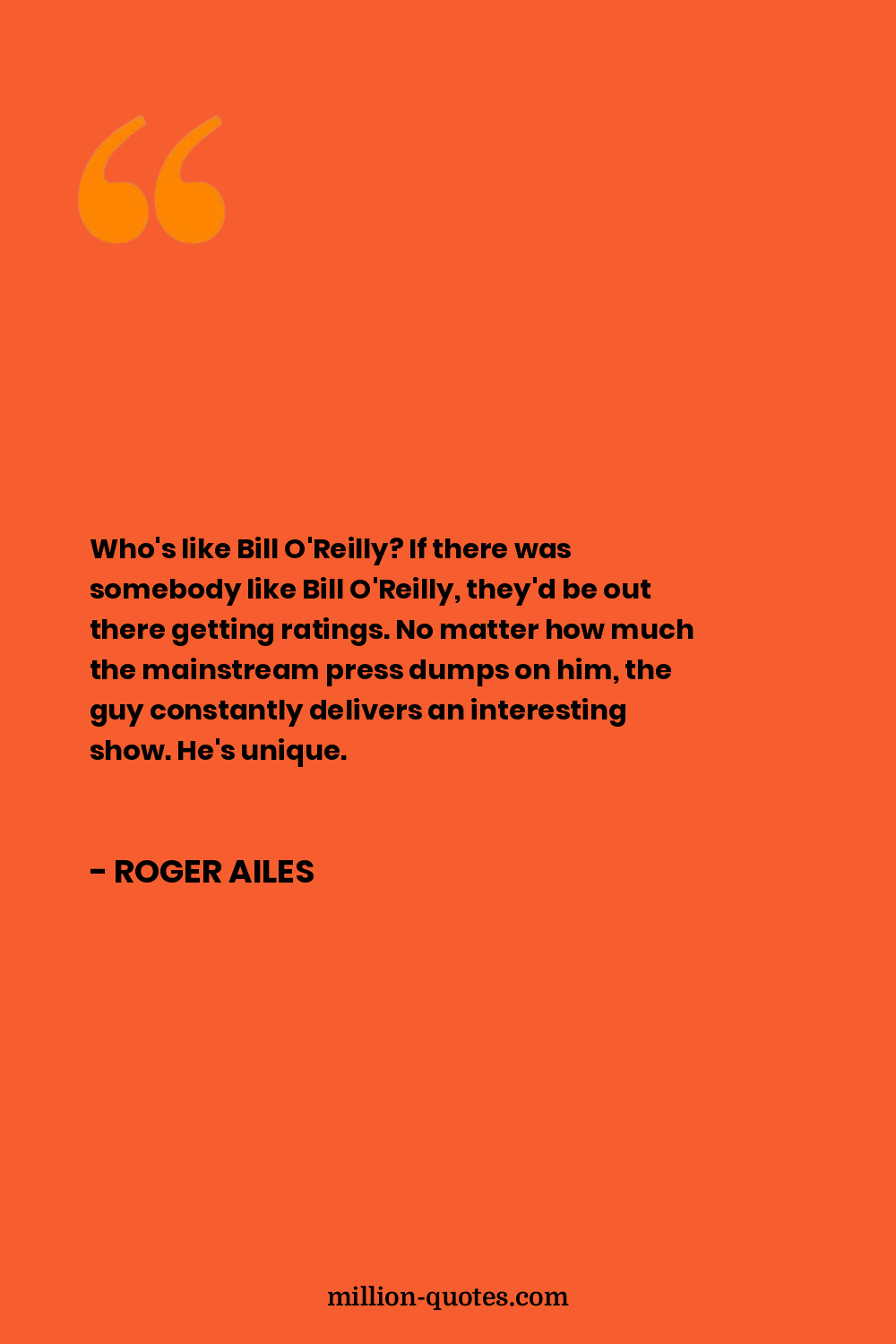 Who's like Bill O'Reilly? If there was somebody like Bill O'Reilly, they'd be out there getting ratings. No matter how much the mainstream press dumps on him, the guy constantly delivers an interesting show. He's unique.