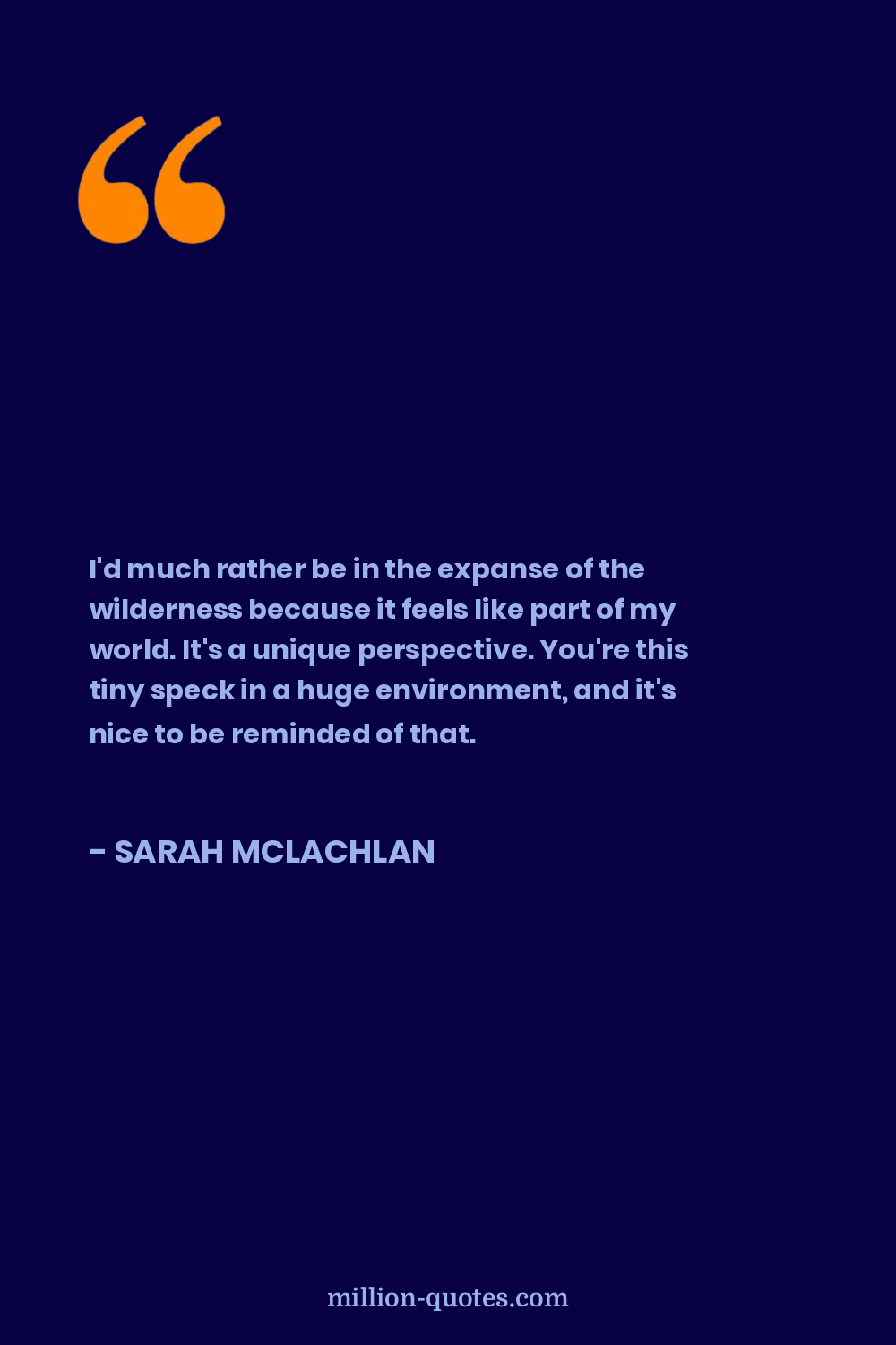 I'd much rather be in the expanse of the wilderness because it feels like part of my world. It's a unique perspective. You're this tiny speck in a huge environment, and it's nice to be reminded of that.