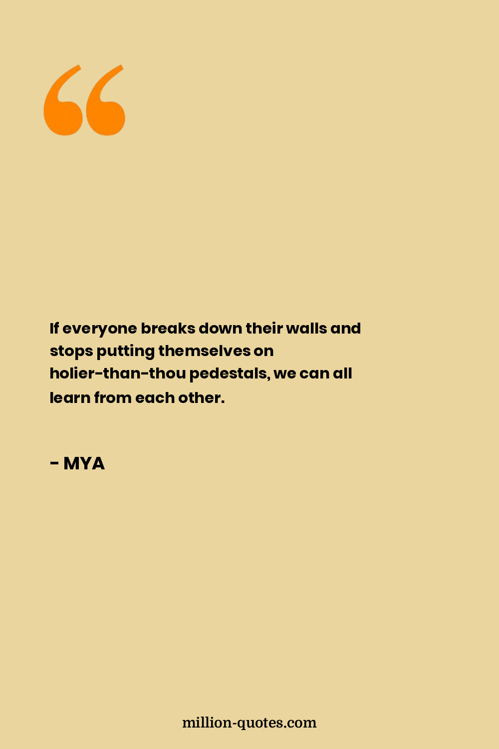 If everyone breaks down their walls and stops putting themselves on holier-than-thou pedestals, we can all learn from each other.