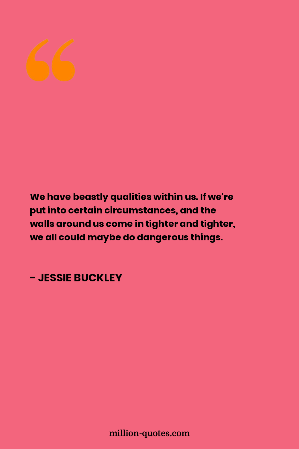 We have beastly qualities within us. If we're put into certain circumstances, and the walls around us come in tighter and tighter, we all could maybe do dangerous things.