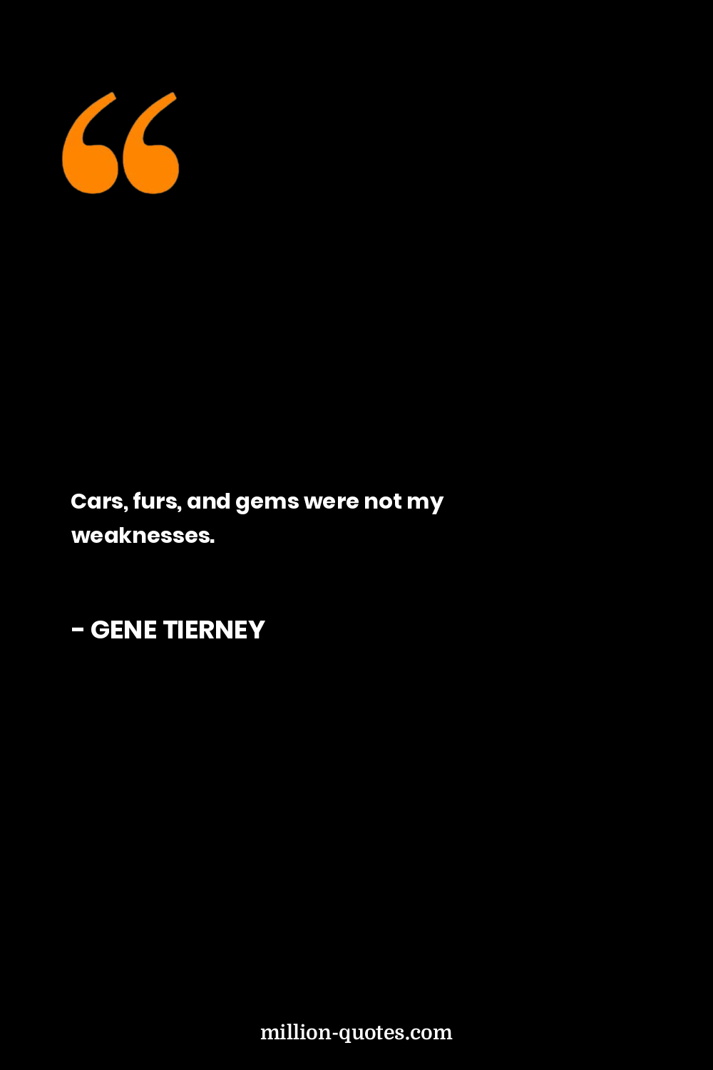 Cars, furs, and gems were not my weaknesses.