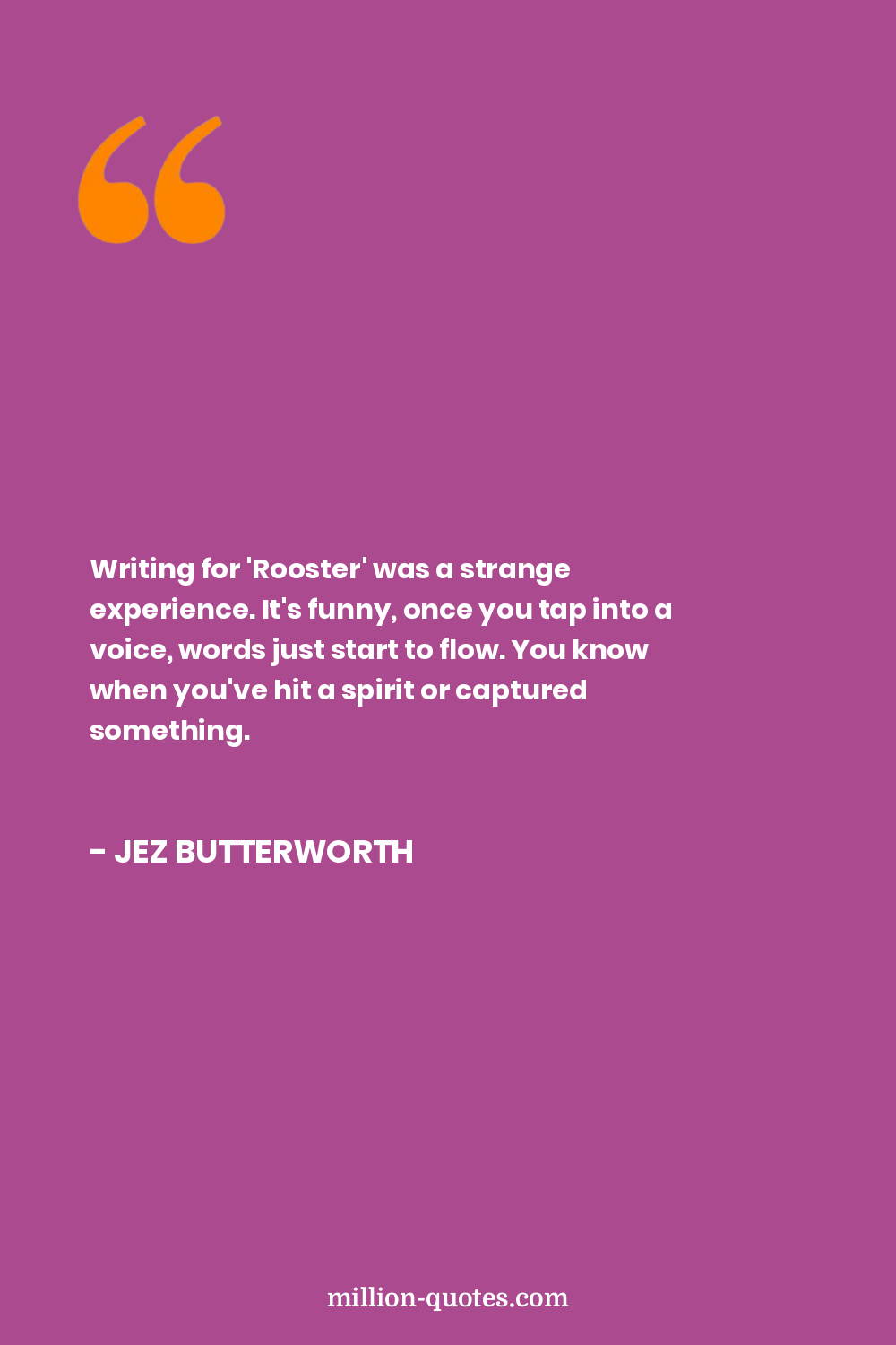 Writing for 'Rooster' was a strange experience. It's funny, once you tap into a voice, words just start to flow. You know when you've hit a spirit or captured something.