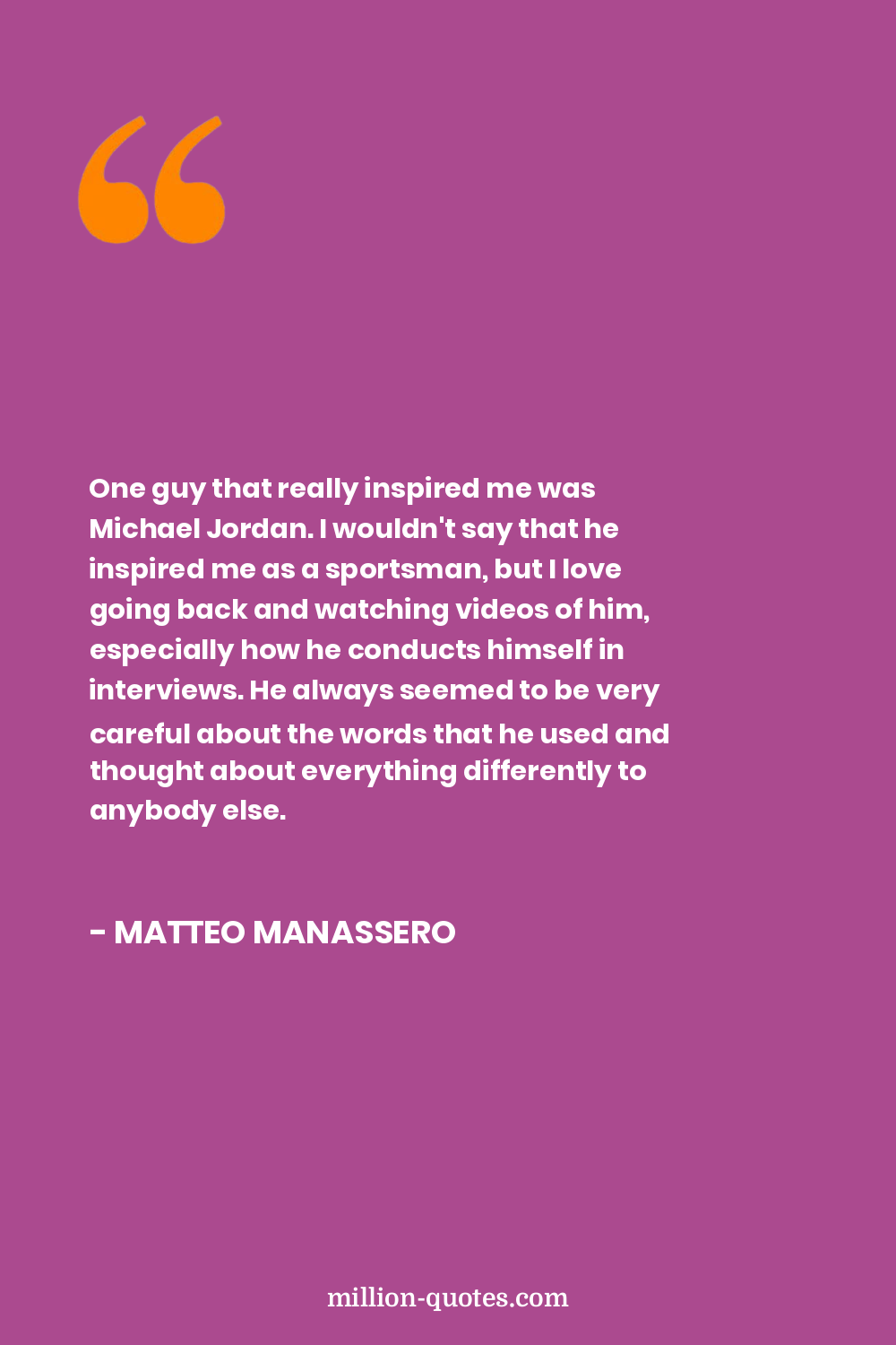 One guy that really inspired me was Michael Jordan. I wouldn't say that he inspired me as a sportsman, but I love going back and watching videos of him, especially how he conducts himself in interviews. He always seemed to be very careful about the words that he used and thought about everything differently to anybody else.