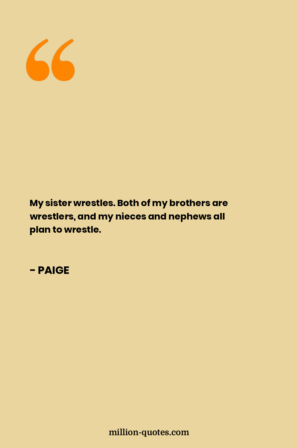 My sister wrestles. Both of my brothers are wrestlers, and my nieces and nephews all plan to wrestle.